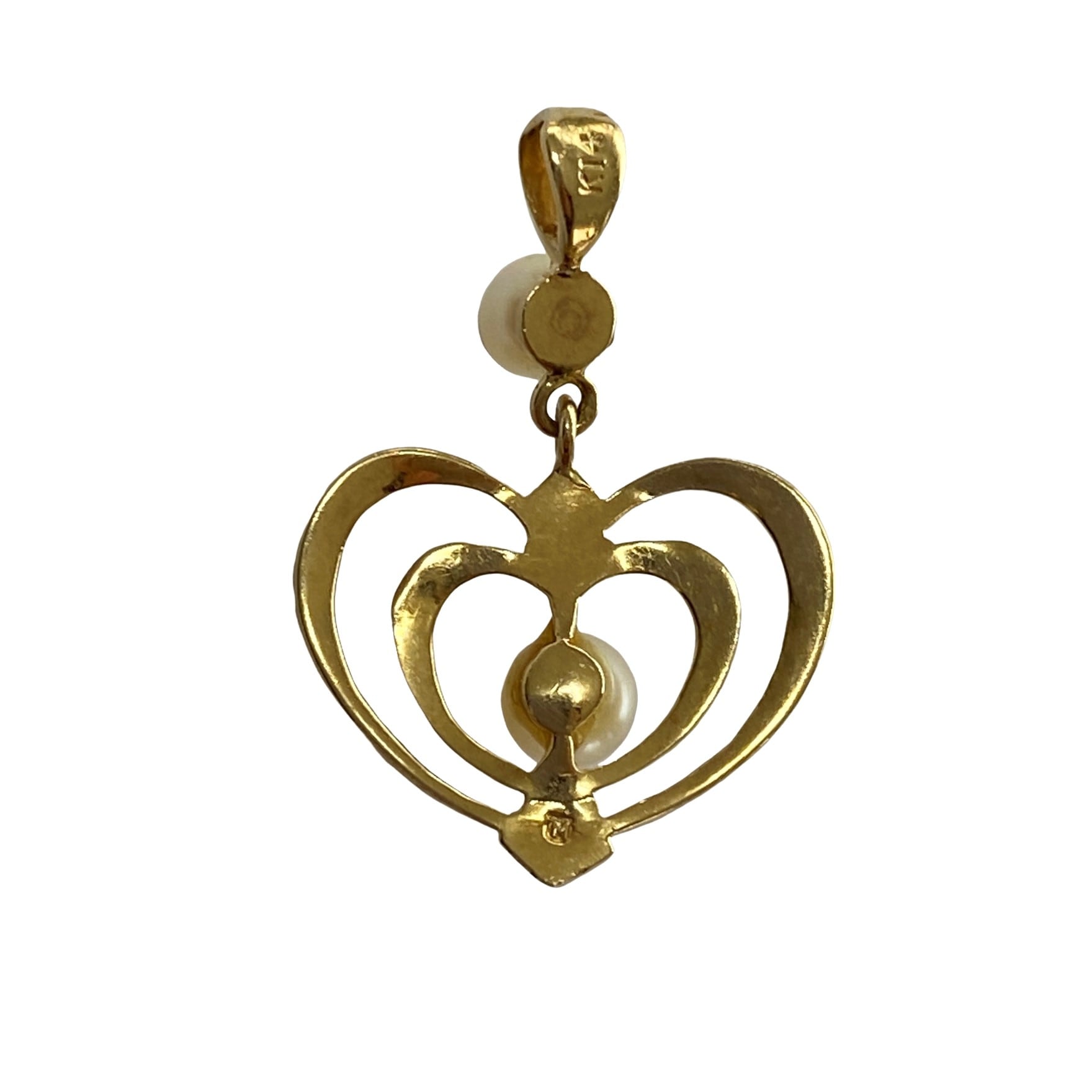 MIKIMOTO ミキモト K14 ネックレストップ ハートフレーム 美品 あこや真珠 2Pパール